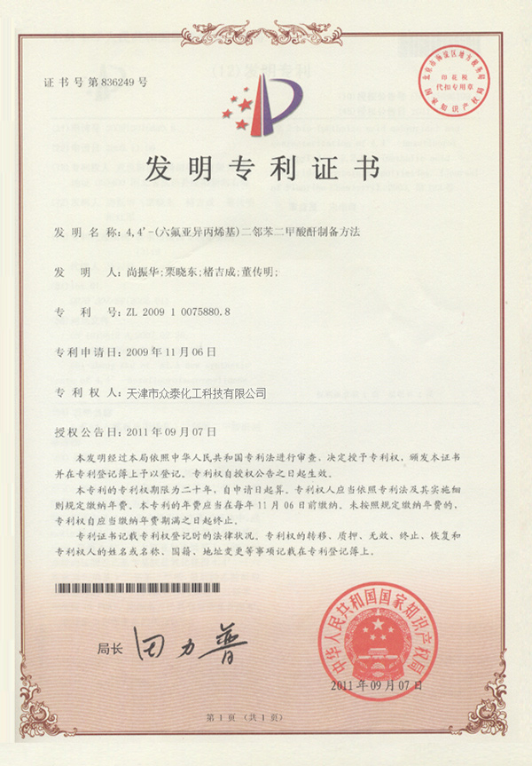 天津眾泰材料科技有限公司(以下簡稱“眾泰”),是一家“以先進功能性聚酰亞胺單體研發生產為核心,致力于推動全球聚酰亞胺材料產業發展”為使命的創新型高新技術企業。眾泰研制的聚酰亞胺單體目前已廣泛應用于無色透明柔性聚酰亞胺薄膜、柔性顯示材料、5G新材料等諸多高科技領域產品的生產。